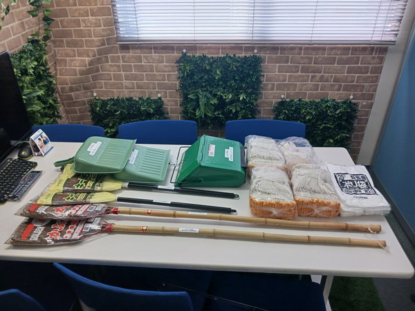 神奈川県土木事務所様よりハマロードサポーターの活動支援する為の物資として、シダほうき、ちりとり、軍手、ゴミ袋を頂きました。