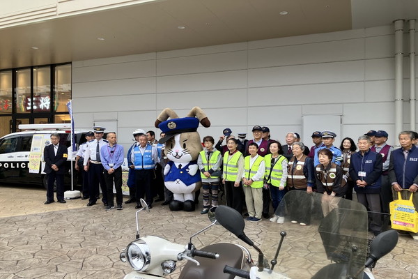 ようやく秋らしい涼しさが感じられる夕方、イオン天王町店にて「高齢者防犯・交通安全および放置自転車追放キャンペーン」に参加しました。