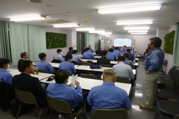 4月の入社以降、毎日研修の日々が続いている新入社員ですが、さすがに疲れの色が見えていました。そんな中でも必死に講師の話を聞こうという姿勢は目を見張るものがありました。座学で資料を見るだけでは話してる人も聞いている人もおもしろくありません。色々な現場の写真や間違いの事例、実機を通じての動作の確認などを交え、少しは有意義な研修となったと感じています。